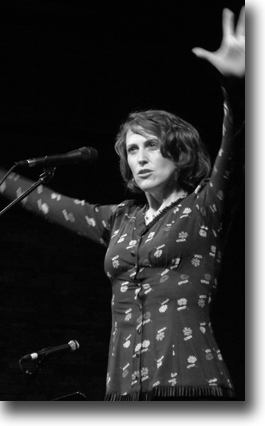 Russell's interpretation of Joni Mitchell's [songs] reveal a true and clear tone reminiscent of Mitchell. But when she sings others' songs, the renditions are hers... Russell had a stunning voice and impressive stage presence. She was fascinating to watch as well as listen to. |